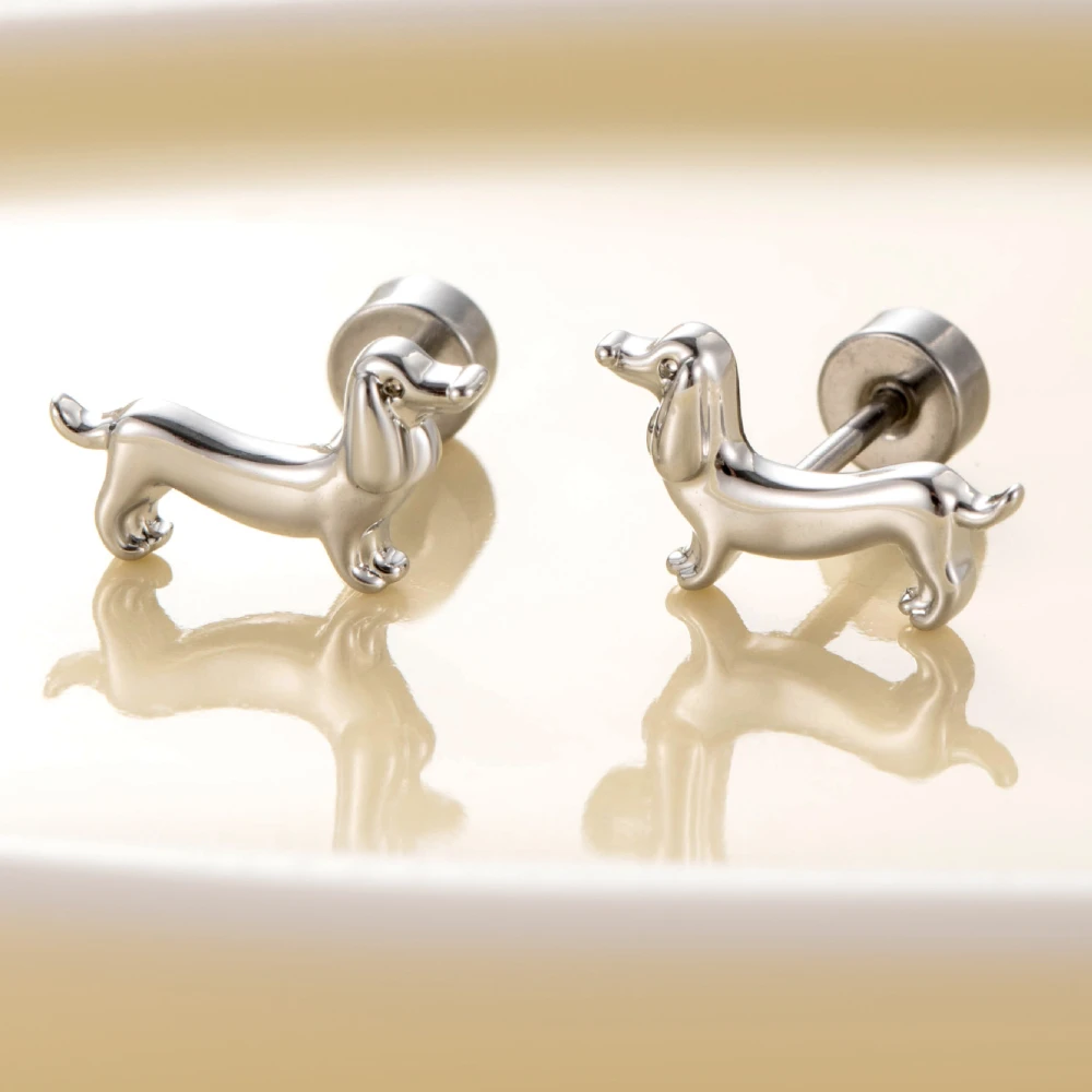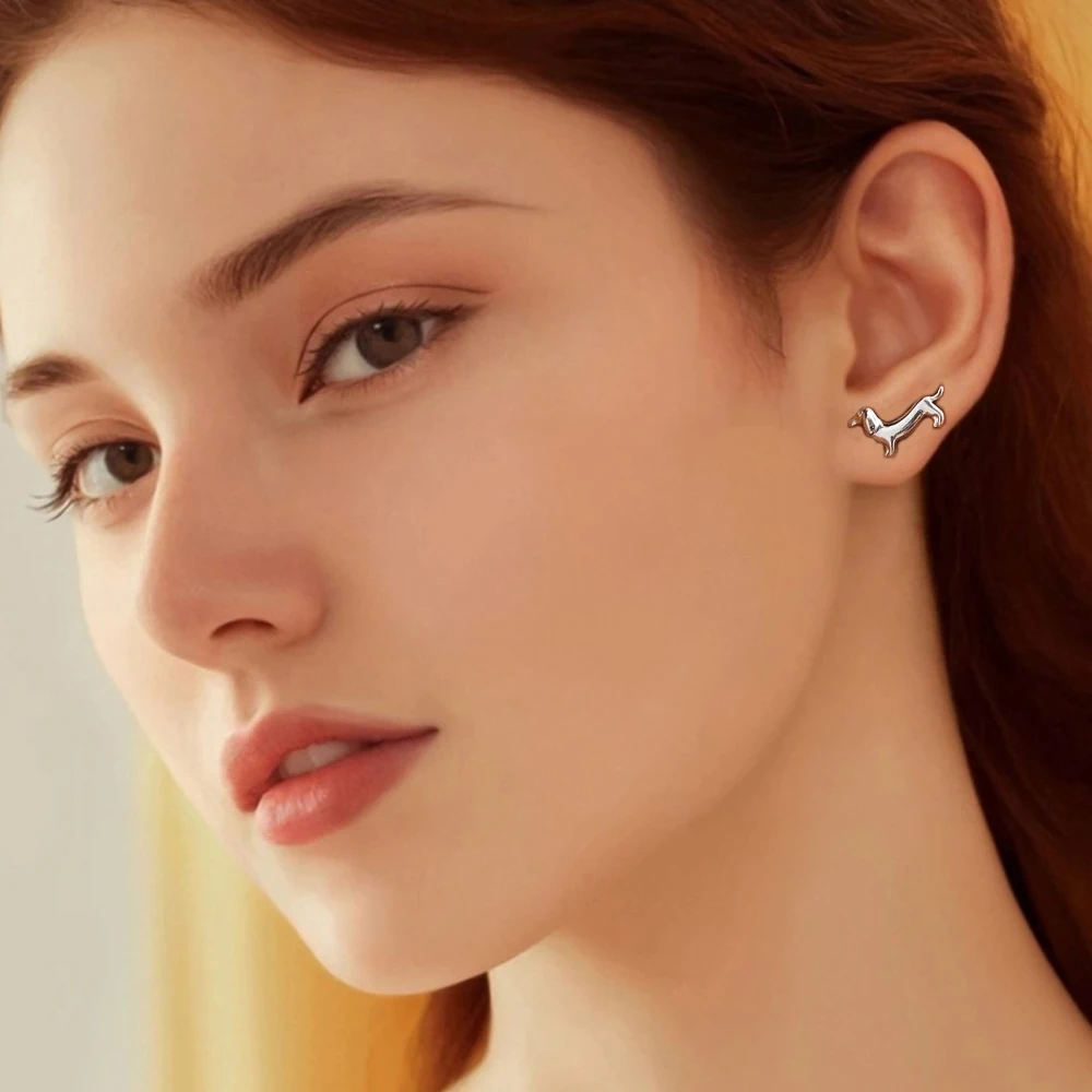 YILUOCD 1 Pair Stainless Steel Dachshund Dog Stud Earrings for Women Exquisite Dog Pet Cute Fashion Jewelry Gift