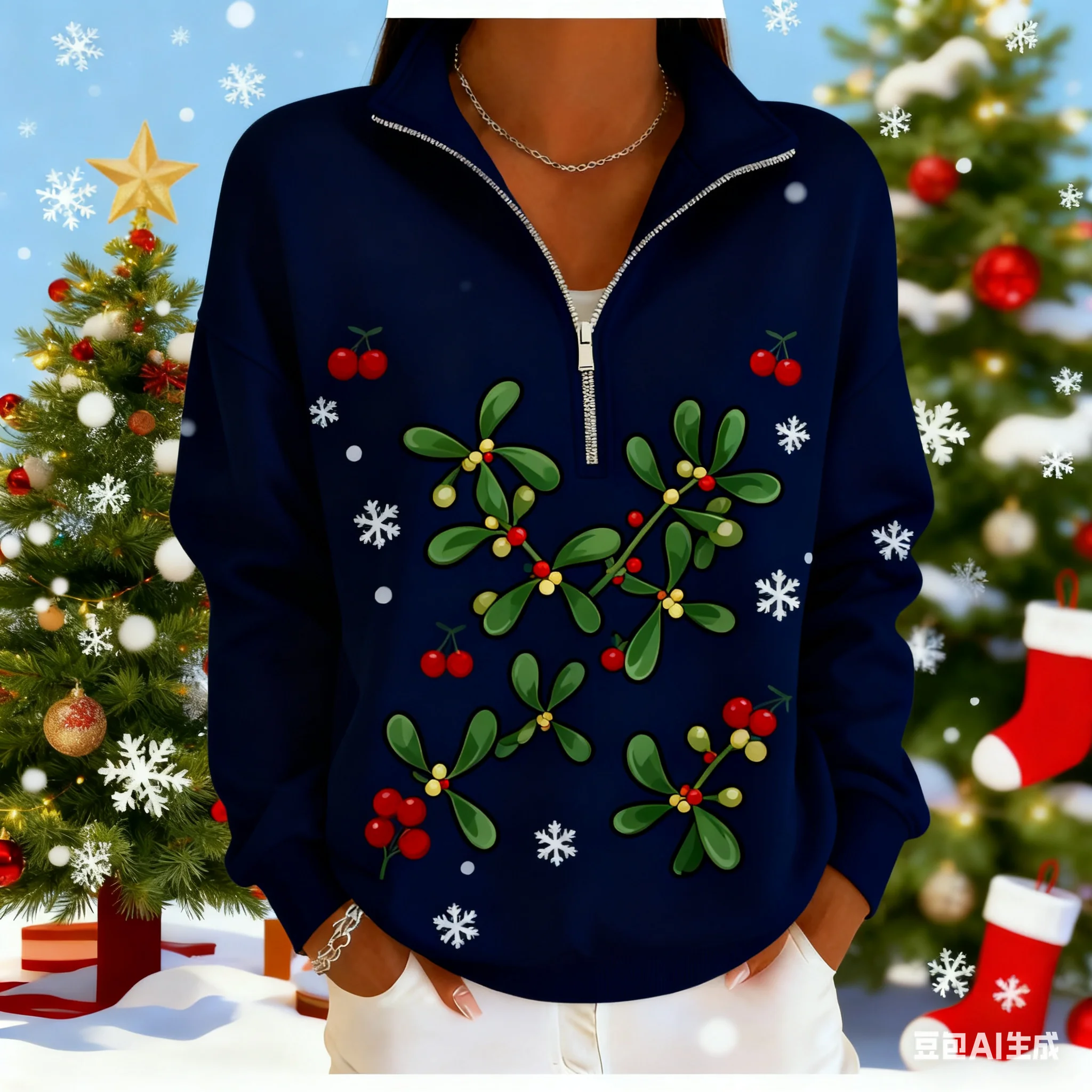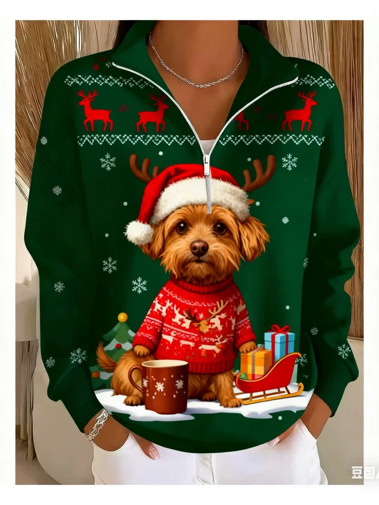 Christmas Women's Sweatshirt pet pattern printed Zipper pullover sweater autumn and winter Women's clothing polyester sweatshirt