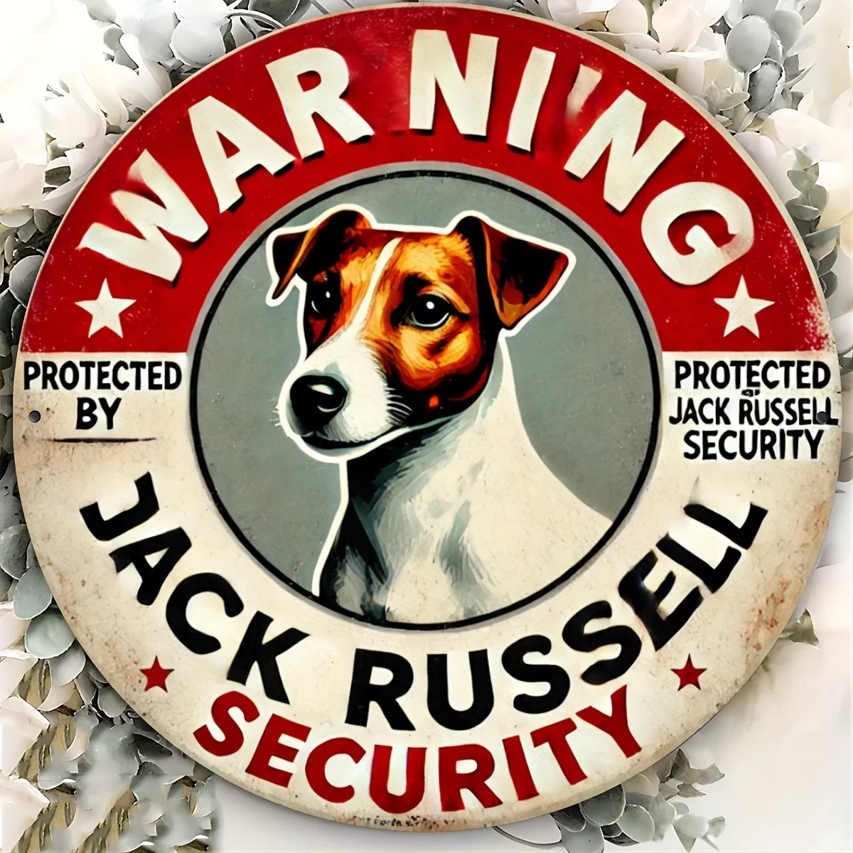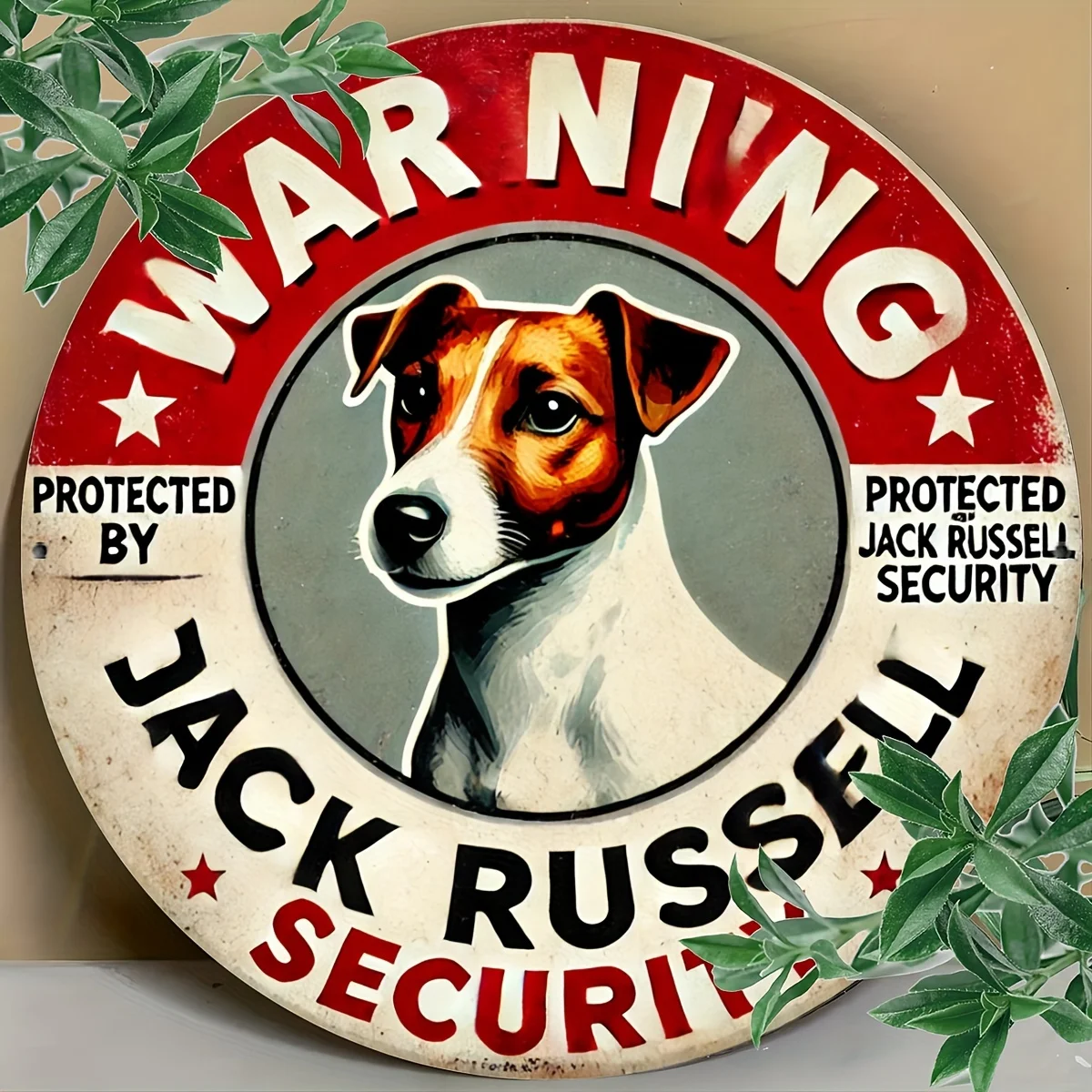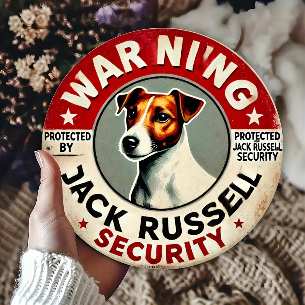 1pc, "War Ning" Jack Russell Security Vintage Metal Aluminum Sign, 2D Art Plaque for Garden, Garage, Home, Cafe, Bar, Club