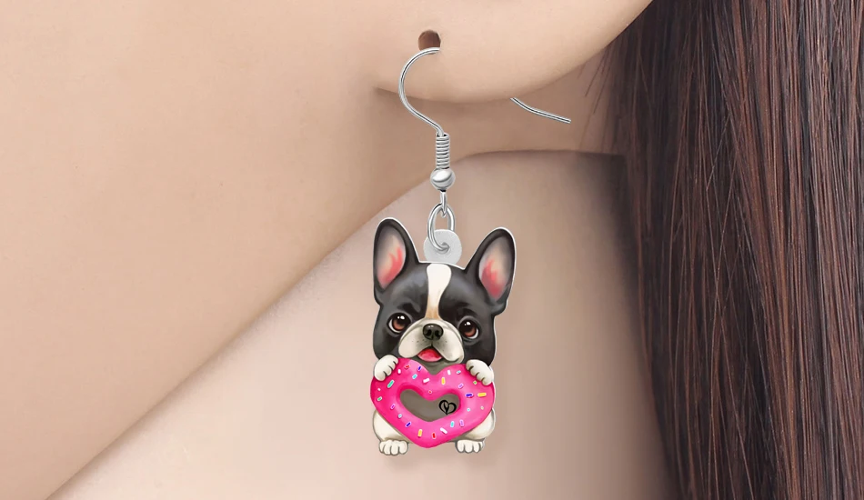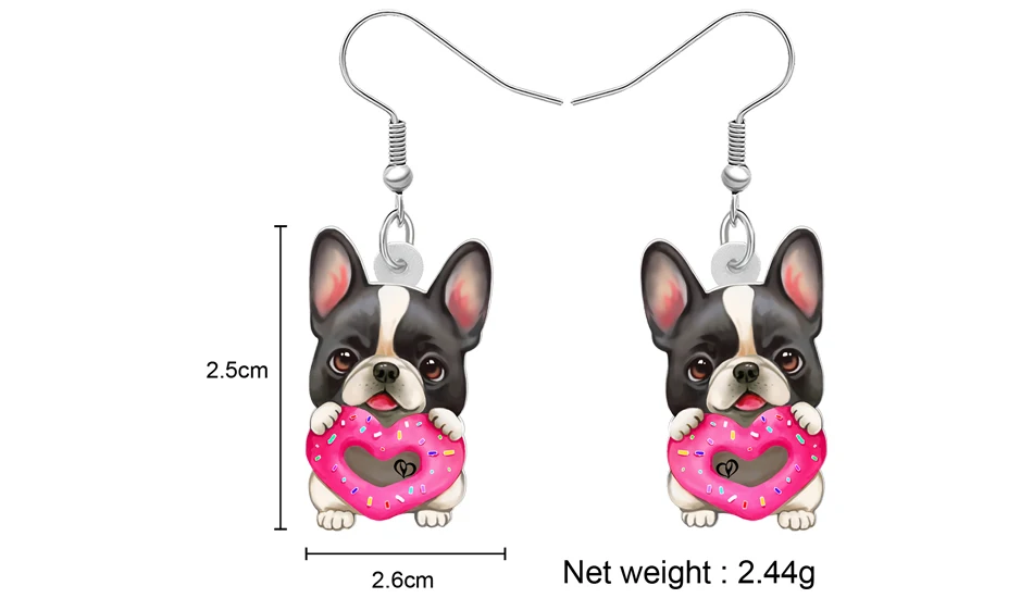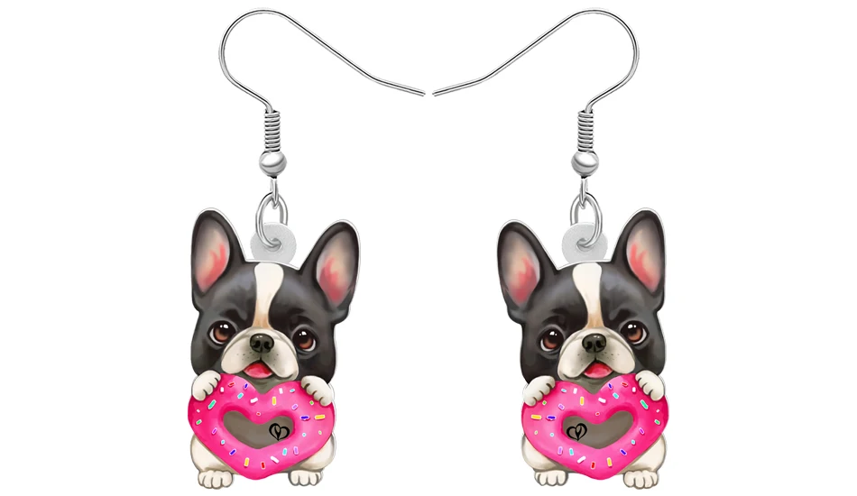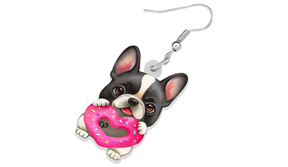 BONSNY Acrylic Sweet Donut French Bulldog Puppy Dogggy Dangle Drop Earrings Jewelry For Women Couples Valentine's Day Gifts