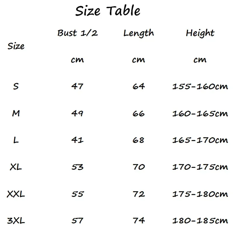 This T-shirt Is Asian Size , About 2 Size Smaller Than EU/US Size ,You Can Chose The Clothes Is Usually Bigger Then Your Body 5-10CM Please Allow 1-3cm differs due to manual measurement , thanks (All Measurement in cm and please note 1cm=0.39inch)