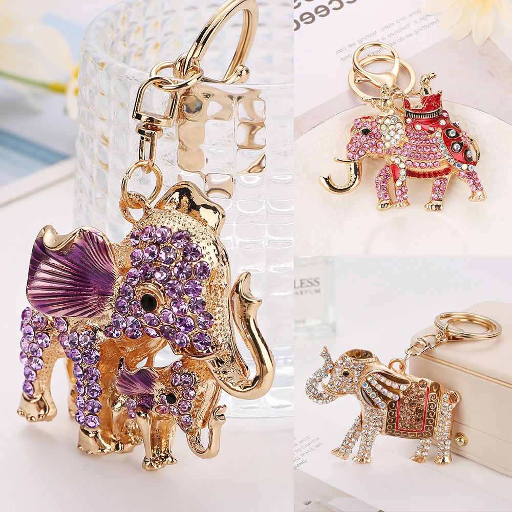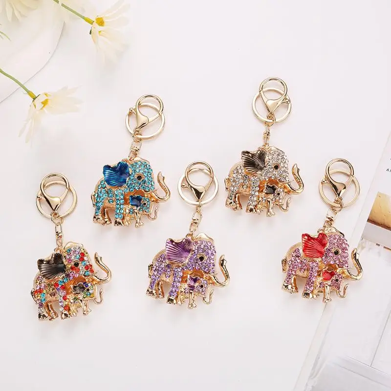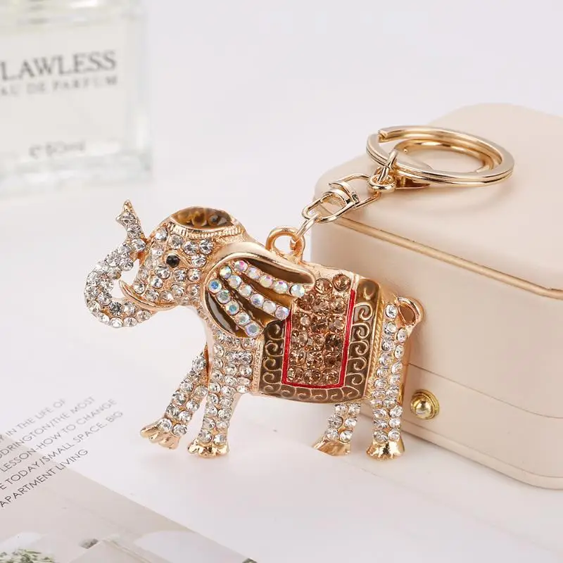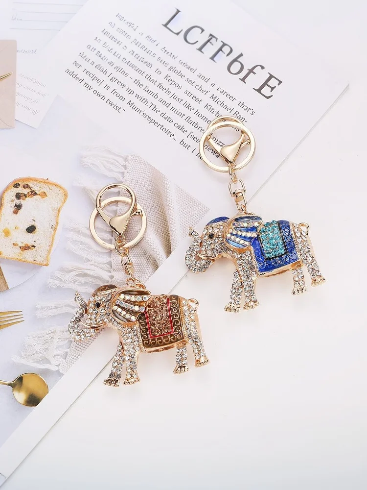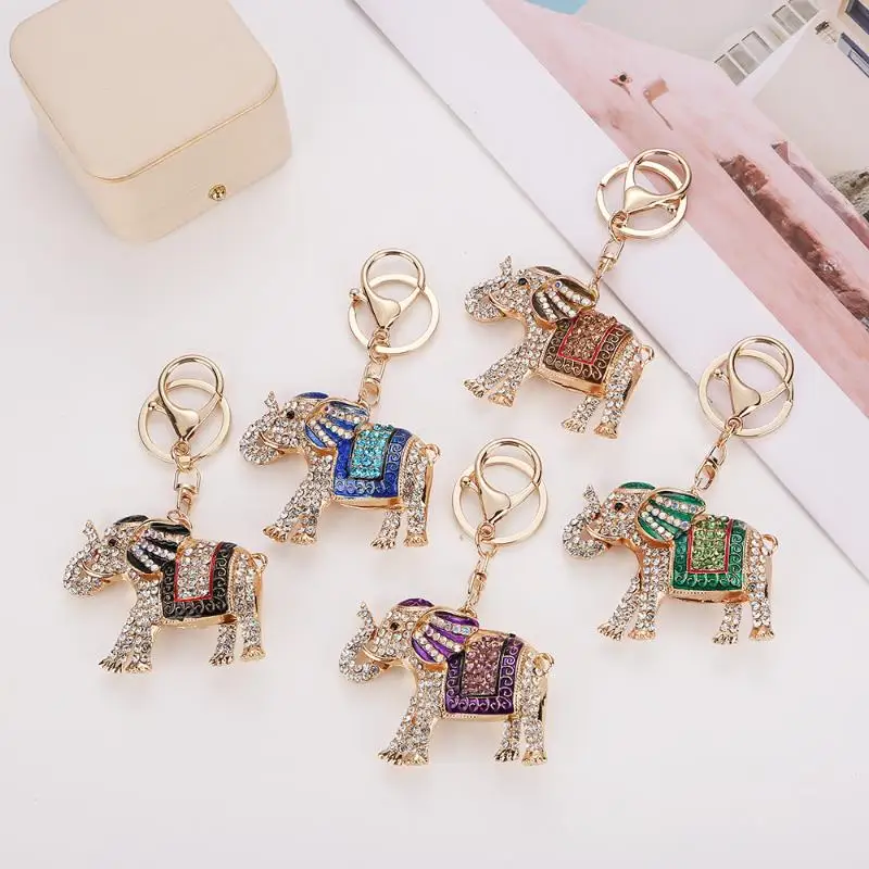 【E】Fashion Rhinestone Elephant Keychains Cute Animal Keyrings Car Key Chain Women Bag Charm Pendant Jewelry