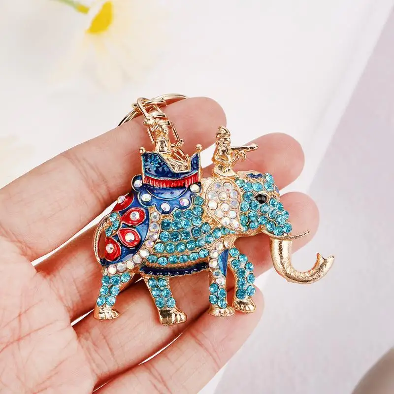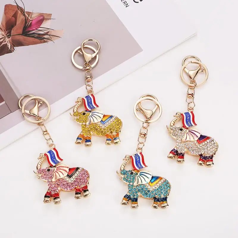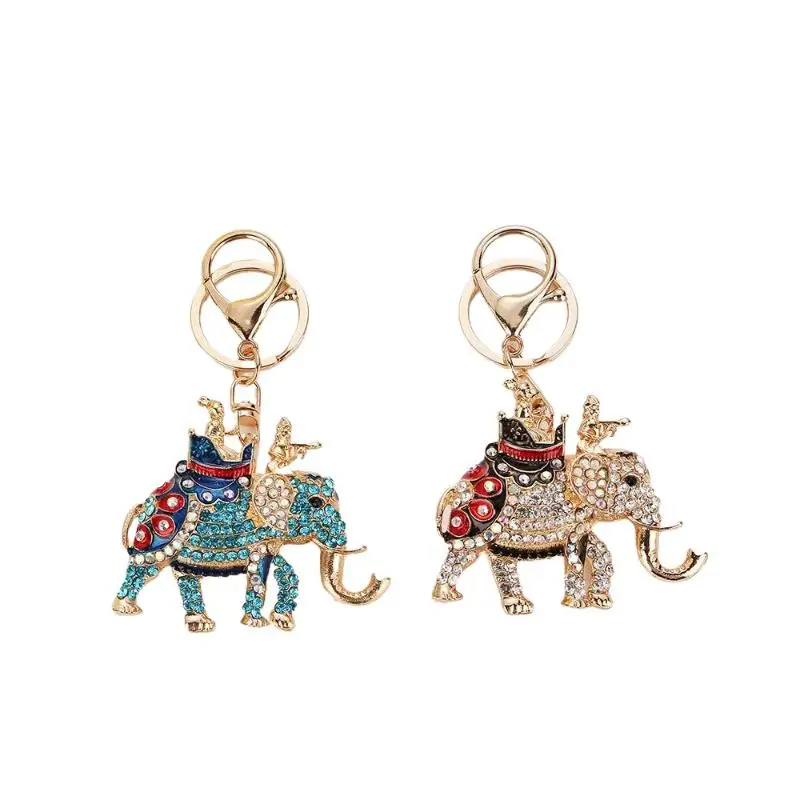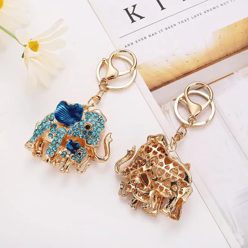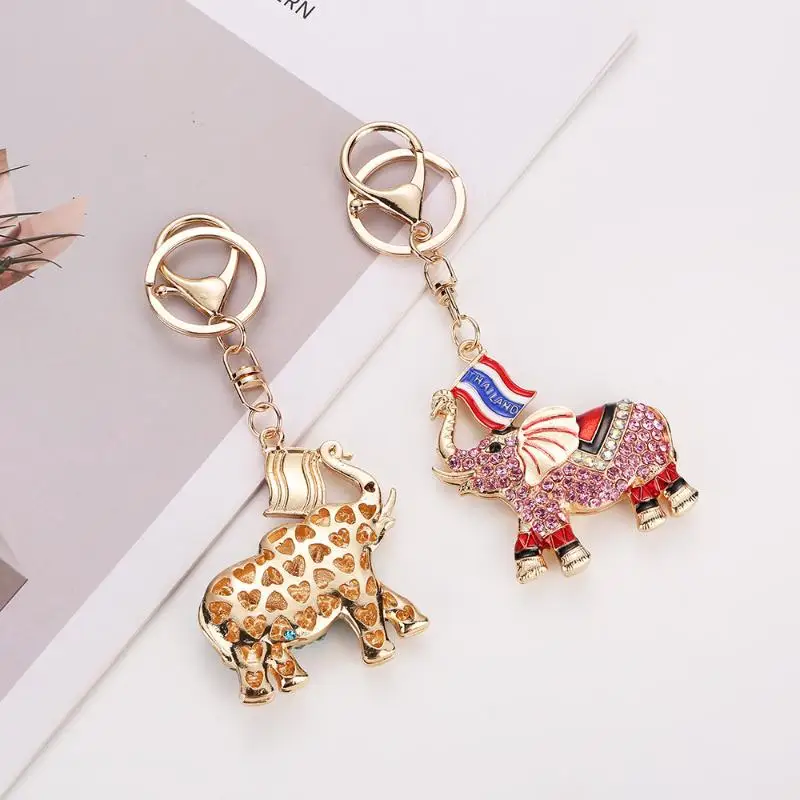 【E】Fashion Rhinestone Elephant Keychains Cute Animal Keyrings Car Key Chain Women Bag Charm Pendant Jewelry