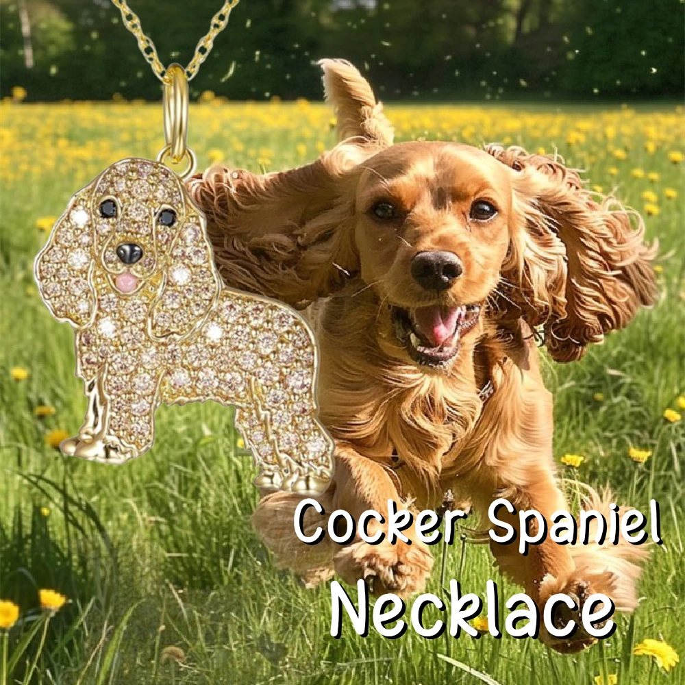 Golden Creative Rhinestone Cocker Spaniel for Women, Adorable Holiday Birthday Gift for Women and Lovers