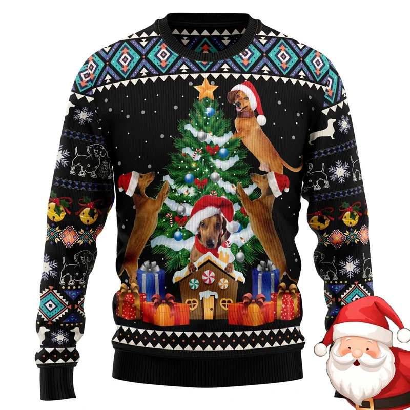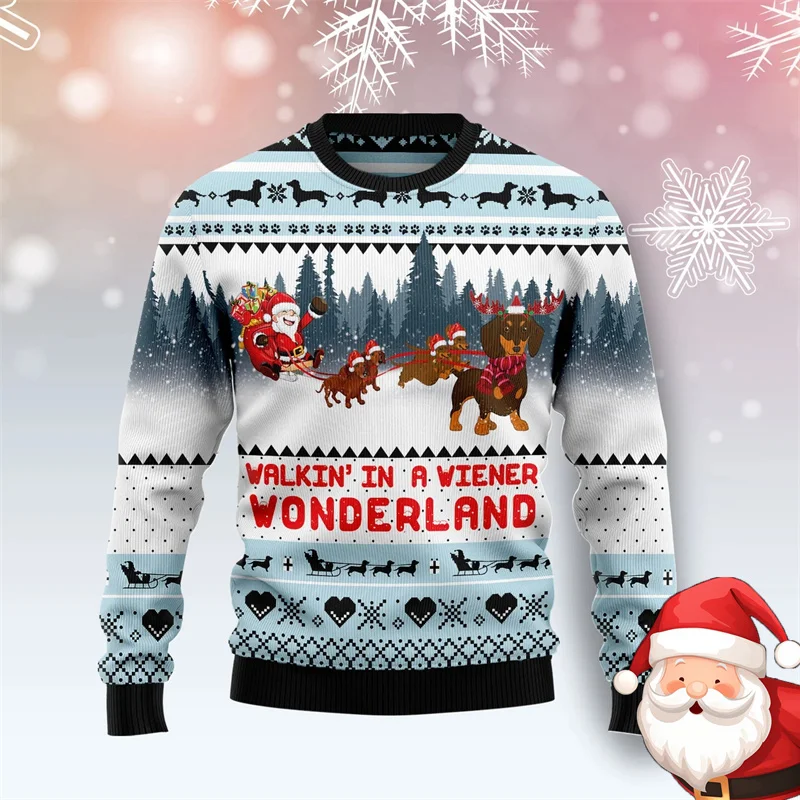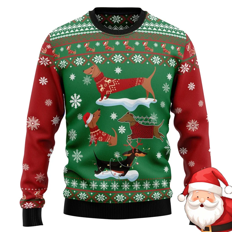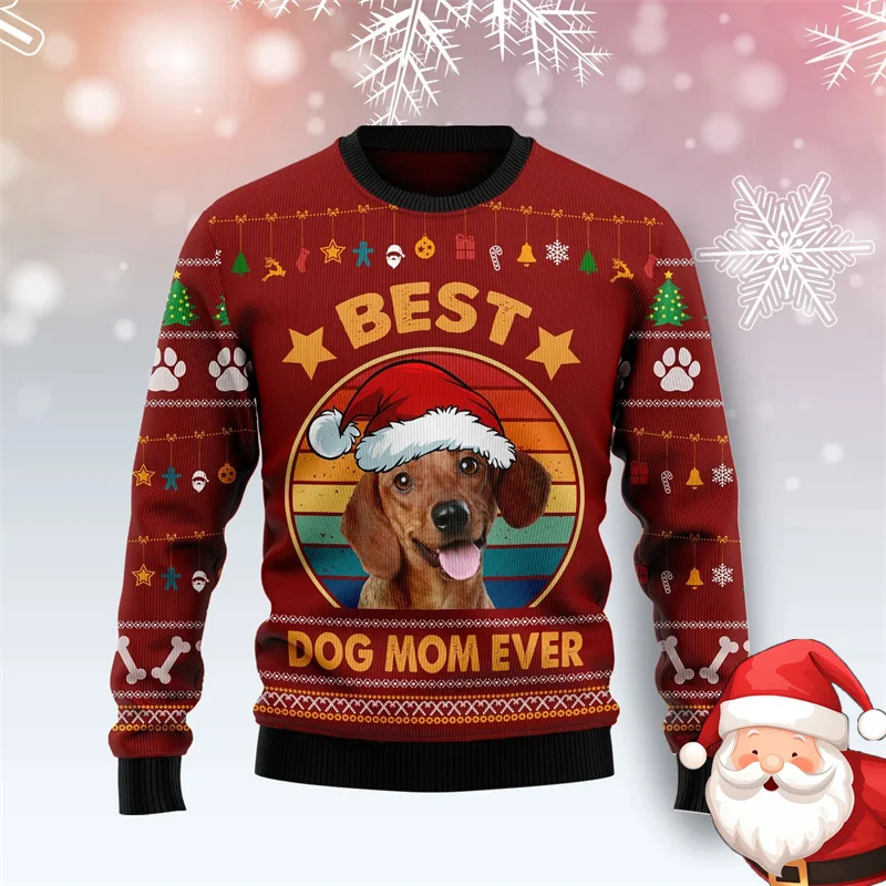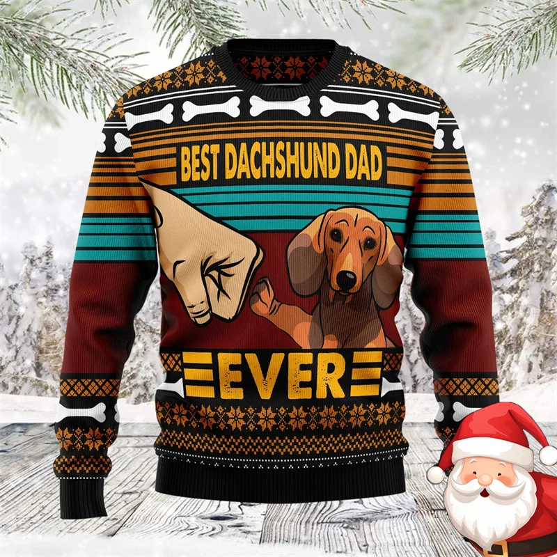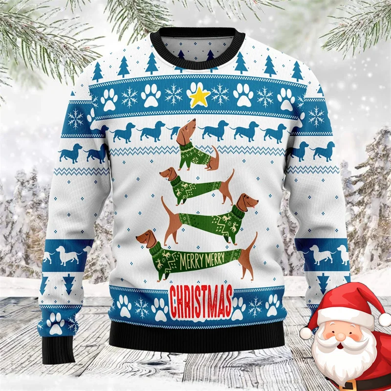 Merry Christmas Dachshund Design Ugly Sweater For Women Casual Loose Fashion Ugly Sweaters Festival Funny Design Sweatshirts